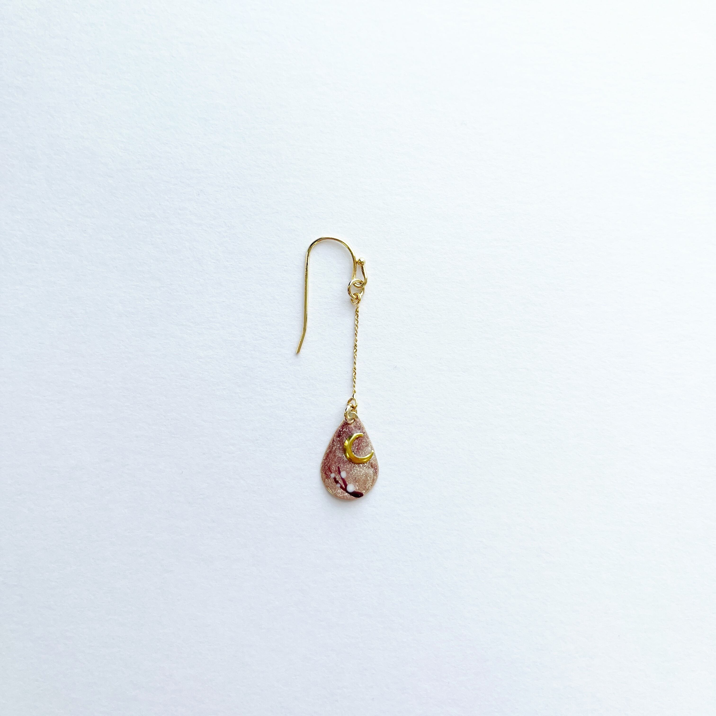 三日月と桜の蕾を描いたしずく型のピアスが登場*